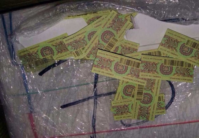 Під час огляду посилки виявили близько 1 млн. 35 тис. марок акцизного податку на тютюнові вироби, а також комплектуючі засоби, за допомогою яких здійснюється їх незаконне виготовлення – пакувальну плівку для цигарок, типографічний матеріал для маркування тютюнових виробів торгівельної марки «LM RED LABEL» та ін.