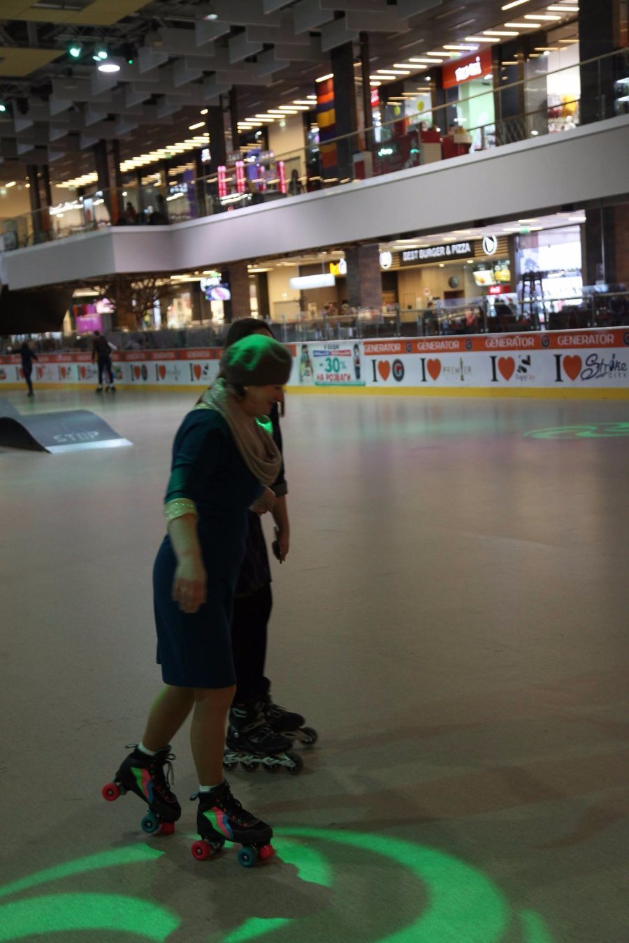 «Далі на нас чекав роледром і дебютний вихід на паркет пані Людмили, котра швидко піддалась на наші вмовляння – і не прогадала, бо навіть жодного разу не впала!!! Починати ковзатись ніколи не пізно – це звичне правило місяць тому вже втілювали на практиці жінки з родин Небесного Легіону Волині зі своїми дітками у загальній кількості 100 осіб на запрошення Порт Сіті в рамках нашої спільної співпраці під назвою «Мирне Небо»!»– продовжує волонтер.