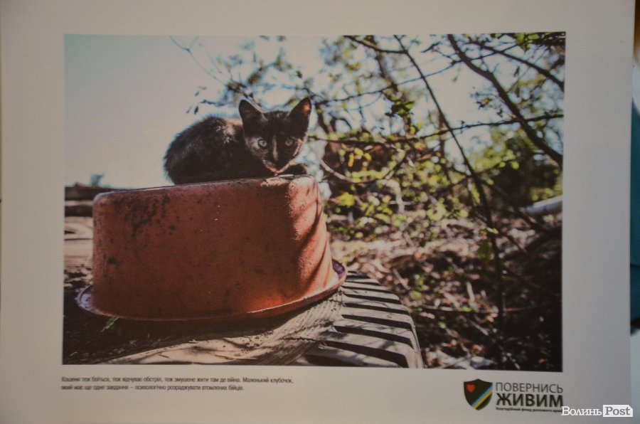 Представниця фонду «Повернися живим» Віра Прохира розповіла, що волонтери, перебуваючи в зоні АТО не мають можливості фотографувати багато облич бійців чи місця розташування. Тому часто фотографують саме домашніх тварин, яких господарі покинули в зоні АТО.