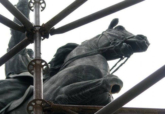 У столиці невідомі пошкодили пам’ятник командиру Червоної Армії Миколі Щорсу, відпилявши частину правої передньої ноги коня.