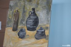 Жінка зауважила, що Приходько пише картини у різних стилях: натюрморт, пейзаж, а зараз він опановує абстракцію.