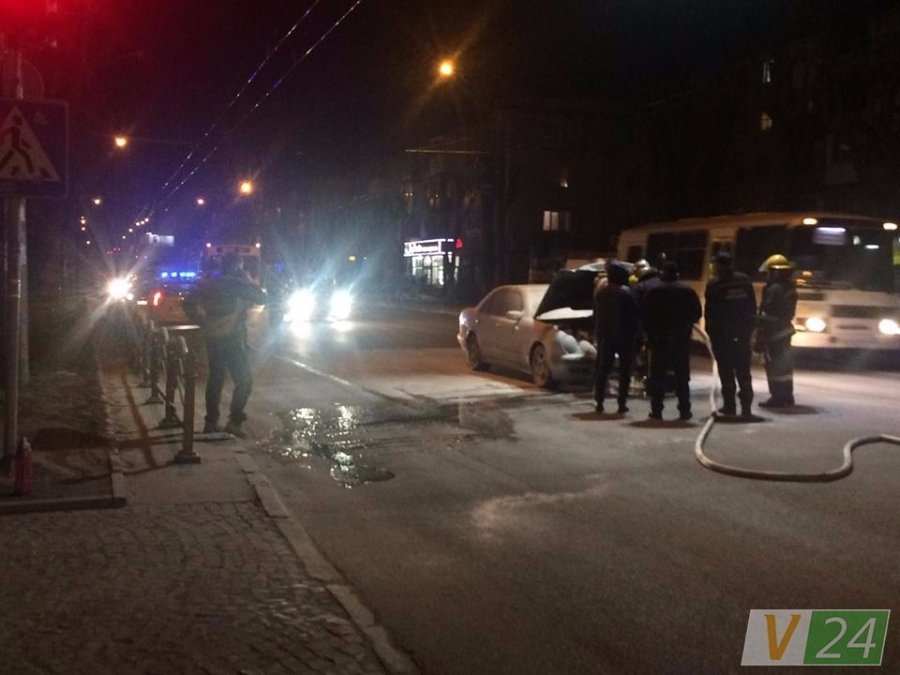 Автомобіль Mercedes загальмував на пішохідному переході, з-під капота повалив густий дим, з’явилося полум’я.