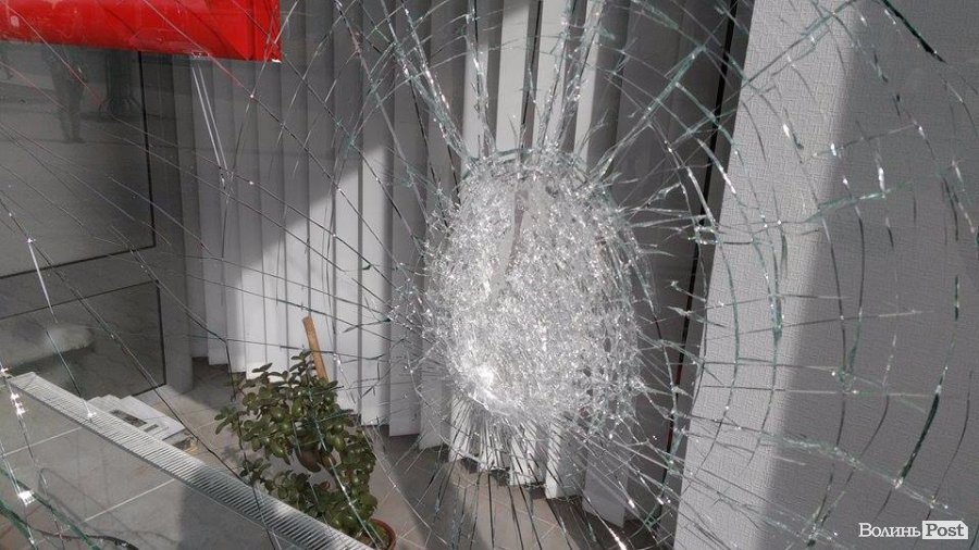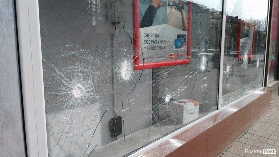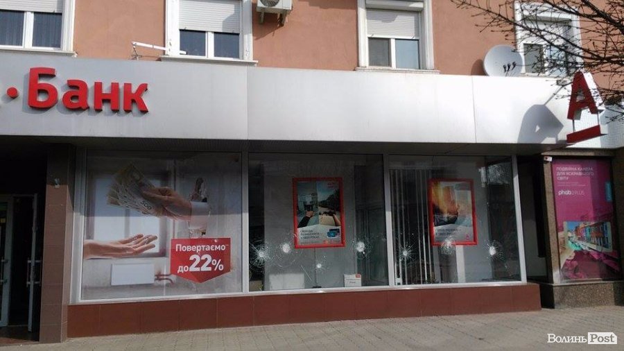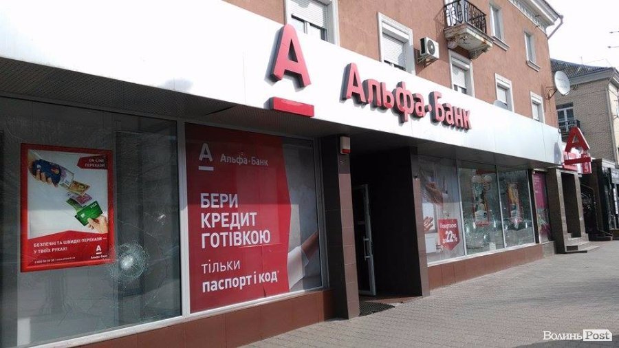 У Луцьку у відділенні Альфа-Банку побили вікна.