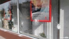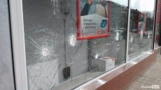 На вітрині видно 7 слідів від ударів твердими предметами.