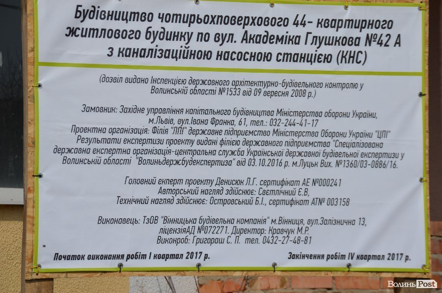 Голова Волинської ОДА Володимир Гунчик розповів, що ініціатива будівництва житла для військових є нагальною та потрібною. Губернатор висловив сподівання, що будинок зможуть завершити до листопада 2017 року.