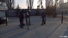 Поблизу будівлі, де працює Генеральне консульство, вони організували телеміст з Польщею. Присутні щонайменше два телеканали.
