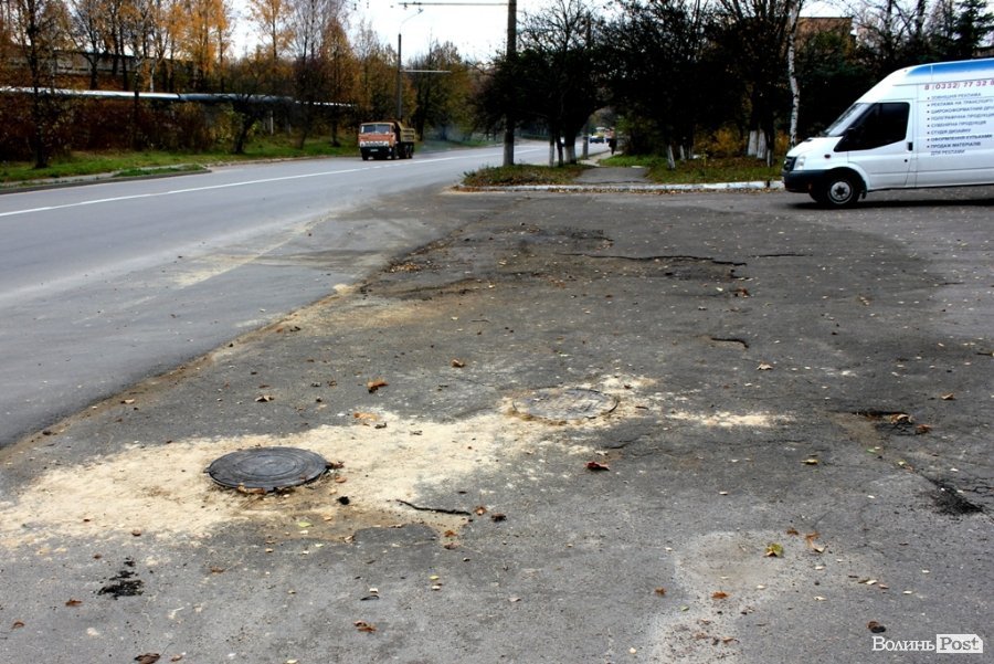 Надвечір сюди прибули працівники комунального підприємства «Луцьктепло». Вони вивантажили на місце самоскид піску, яким засипали розлите дизпаливо. А ще повідкривали люки, щоб токсична речовина випаровувалася.