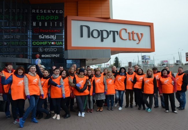У рамках Року соціальних ініціатив, який триває у торгово-розважальному центрі «ПортCitу», понад півсотні працівників долучилися до передвеликоднього прибирання території біля центру.