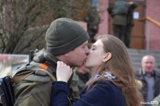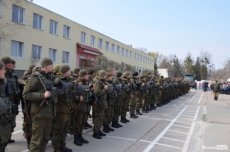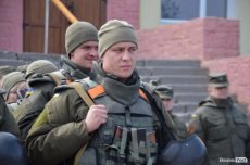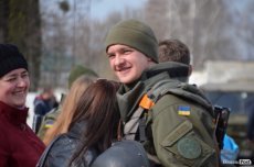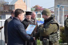 З вітальними промовами звернулися й радник голови облдержадміністрації Борис Кондратюк, заступник міського голови Андрій Киця та священослужитель, який поблагословив бійців.