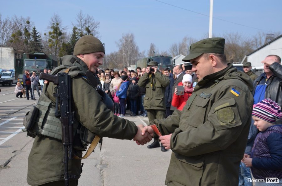 Зустрічали військовослужбовців на плацу частини товариші по службі та рідні 31 березня.