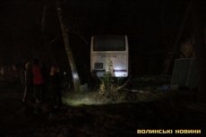 Від удару автобус винесло на узбіччя, він вирвав з коренем два дерева і лише третє змогло зупинити транспортний засіб за лічені метри до житлового подвір'я. На щастя, в ДТП ніхто не постраждав. На місці пригоди працюють працівники ДСНС.