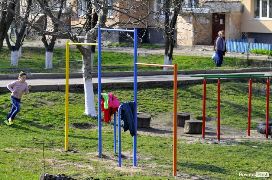 «В дворі маємо нову розвагу – перекладини. Їх встановили ще вчора за сприяння благодійного фонду «Дізар» депутата Луцької міської ради Петра Нестерука», - додала Байда.