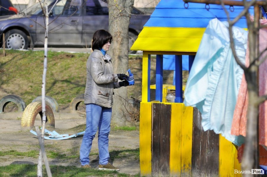 Мешканці вирішили озеленити двір та пофарбувати гойдалки та увесь провіант двору.
