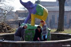 Як у Луцьку патрульні з службовцями прибирали біля «слоника»