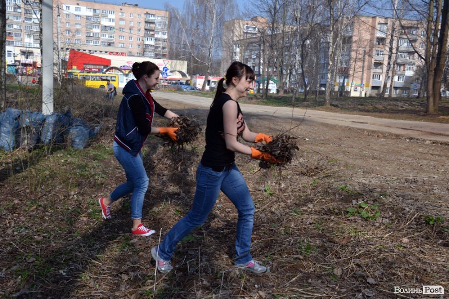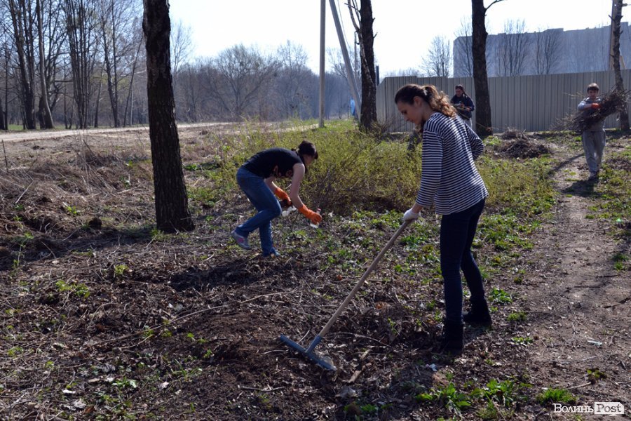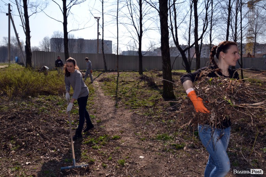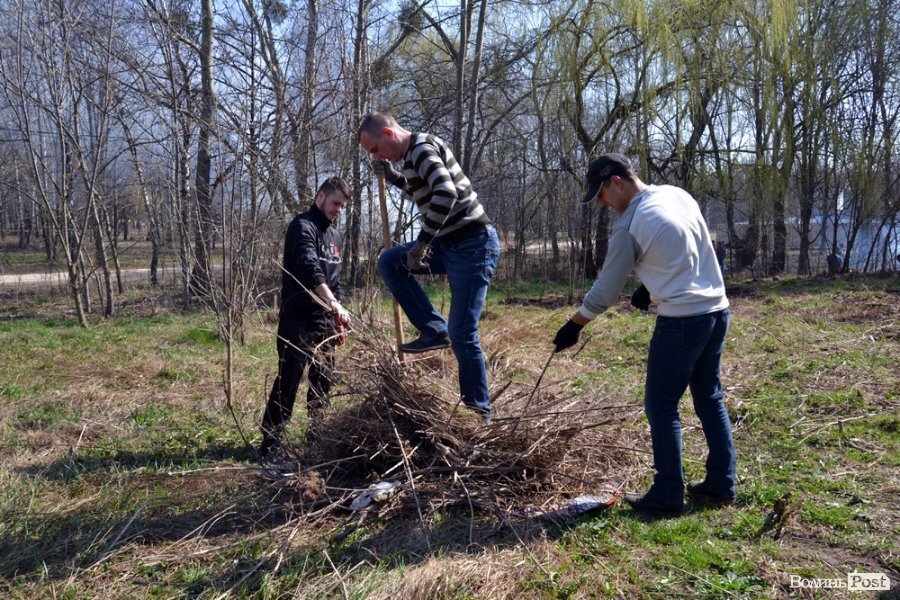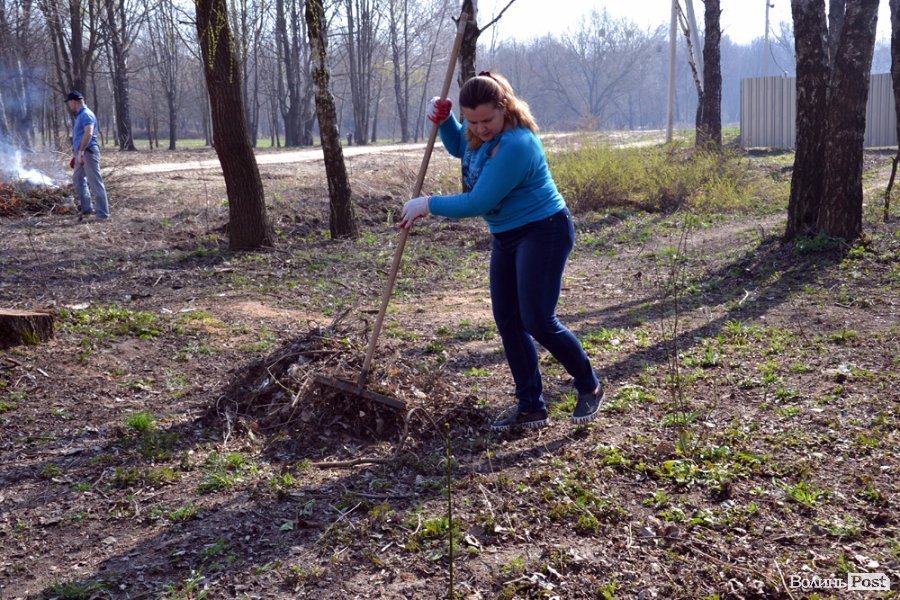 Озброївшись граблями, сокирами, рукавичками величезний колектив прибрав чимало відходів, обрубав сухе гілля та прочистив землю від торішнього осіннього листя.