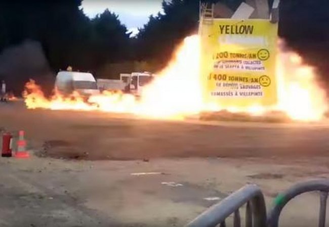 Із відео видно, як на відстані підносять смолоскип до «доріжки» із соломи, яка моментально спалахує і рухається до щитів. Скоріше за все, солому обробили якось запальною сумішшю. Коли вогонь добирається до великих щитів за лічені секунди лунає вибух – ці щити, а також дерев'яні конструкції розлітаються в усі боки.