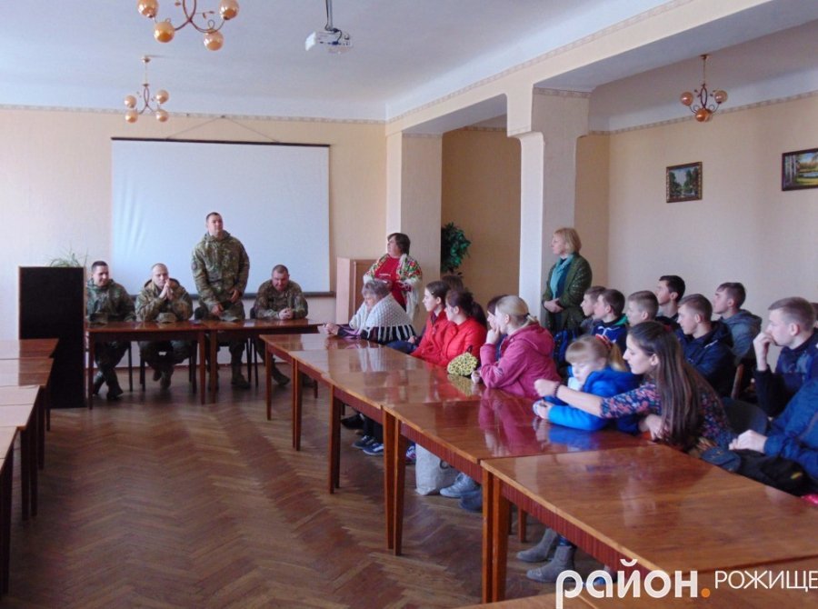 На початку зустрічі вони розповіли студентам трохи про підрозділ, і що таке для них патріотизм.