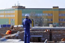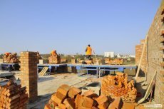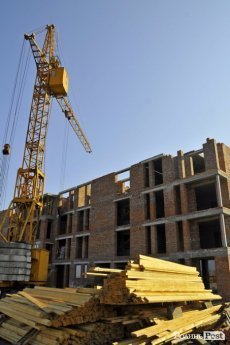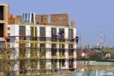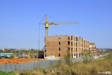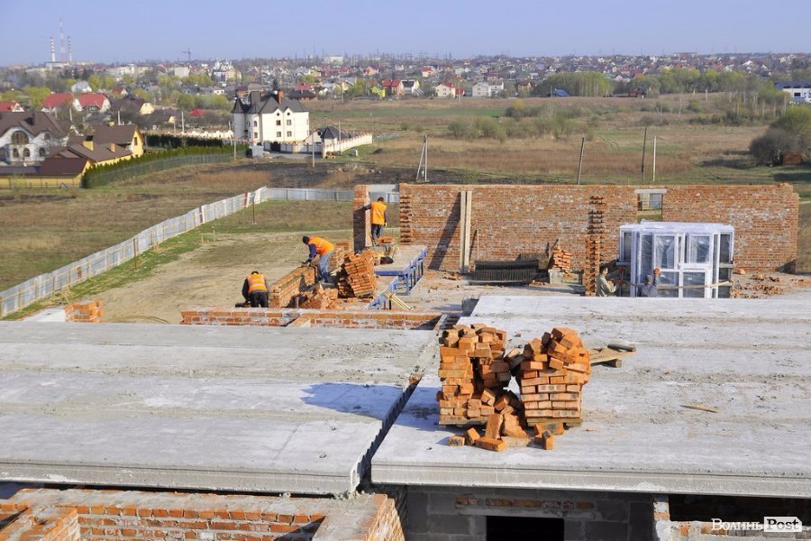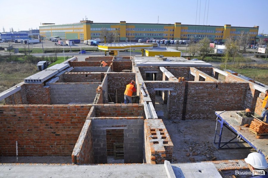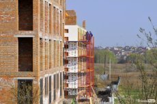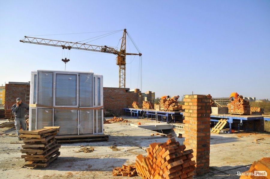 А от будівництво першої черги - на фінальному етапі. Робітники вже завершують зведення 5-го поверху. Окрім того, почали роботи над фасадом, на трьох поверхах встановлені вікна.