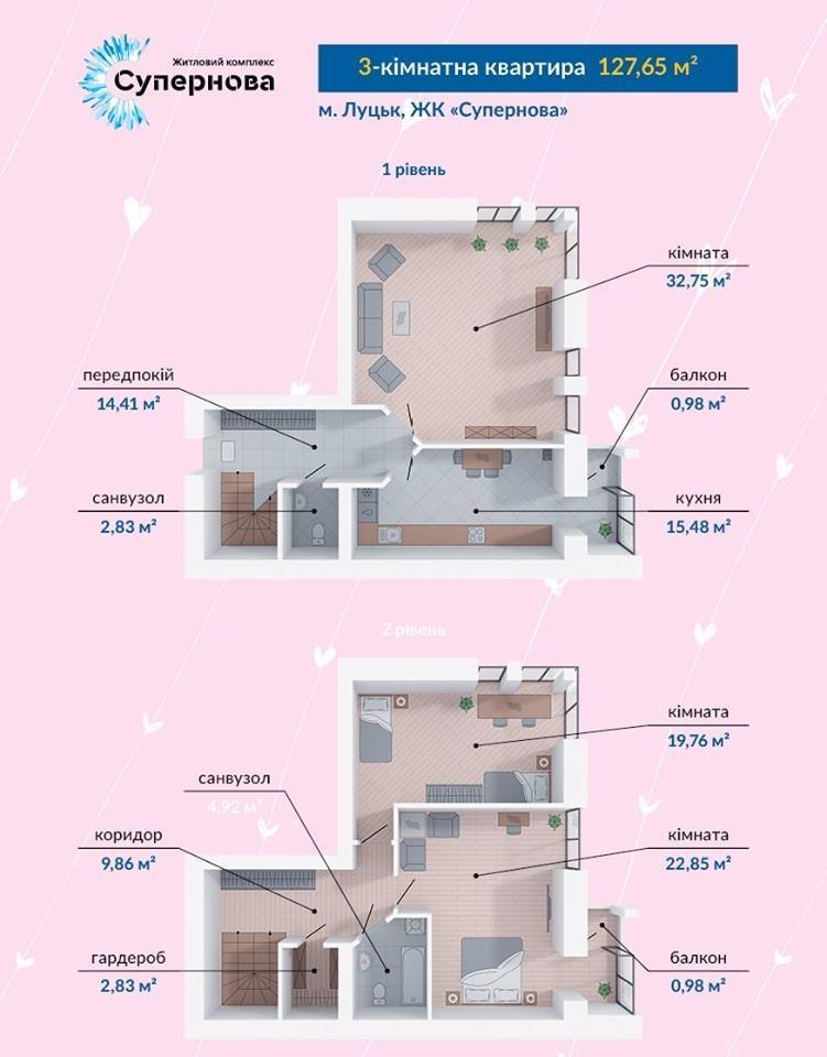 3-кімнатна дворівнева квартира загальною площею 127,65 кв.м у «Супернові» – 1 420 000 гривень.