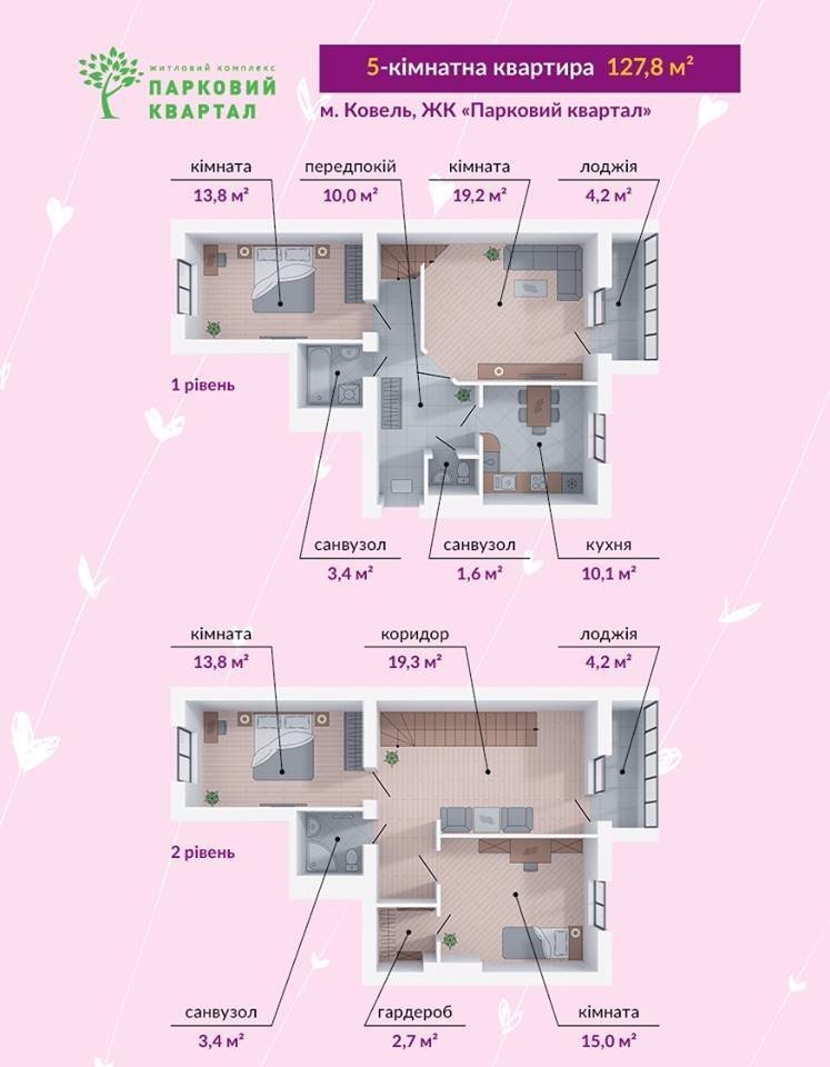 5-кімнатна дворівнева квартира загальною площею 127,8 кв.м у житловому комплексі «Парковий квартал» – 1 200 000 гривень.