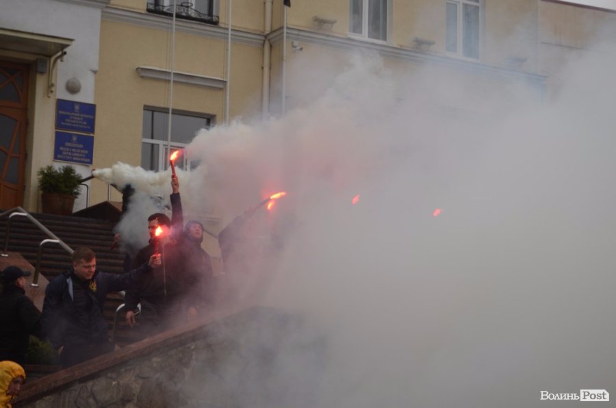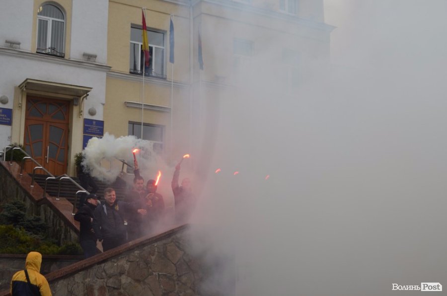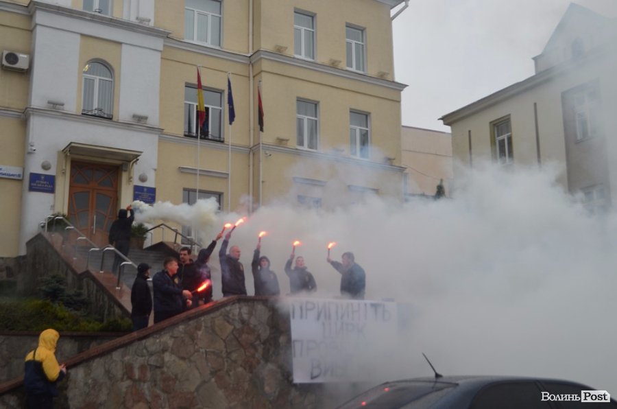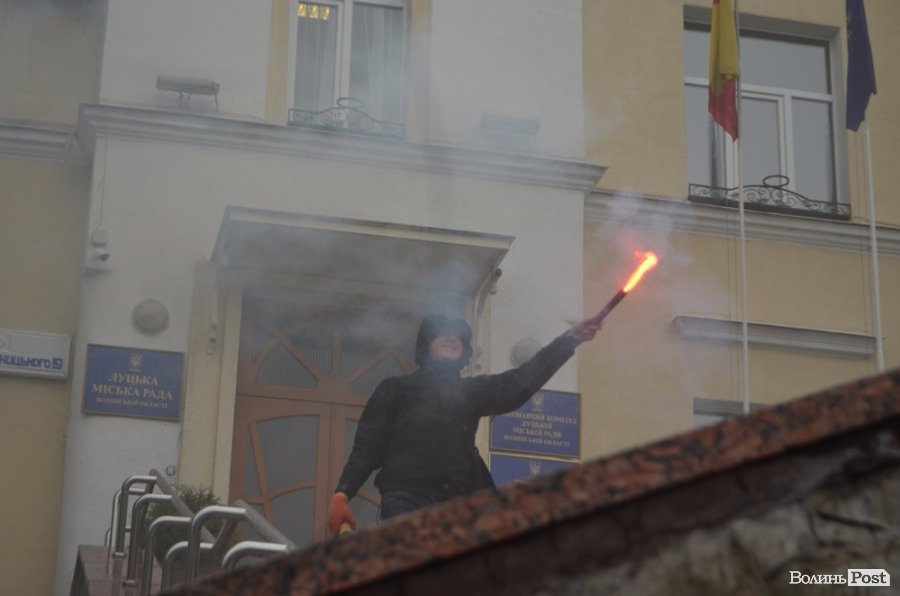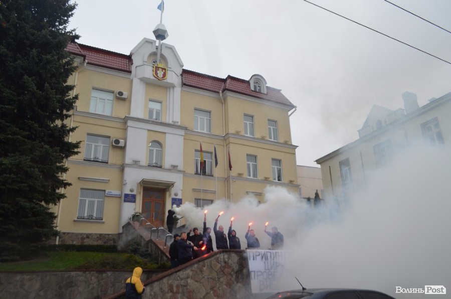 Під Луцькрадою – фаєри і «вибухи»: вимагають призначення виборів