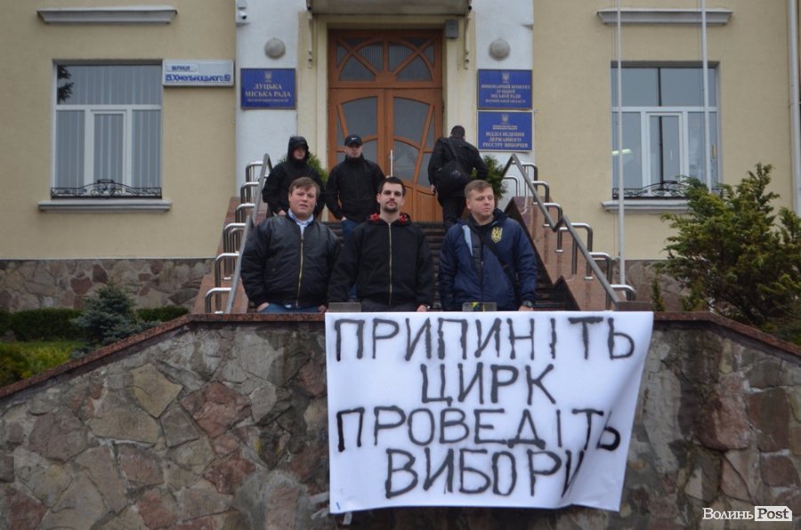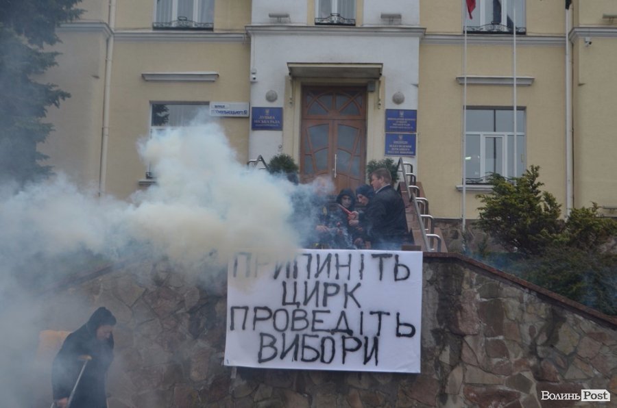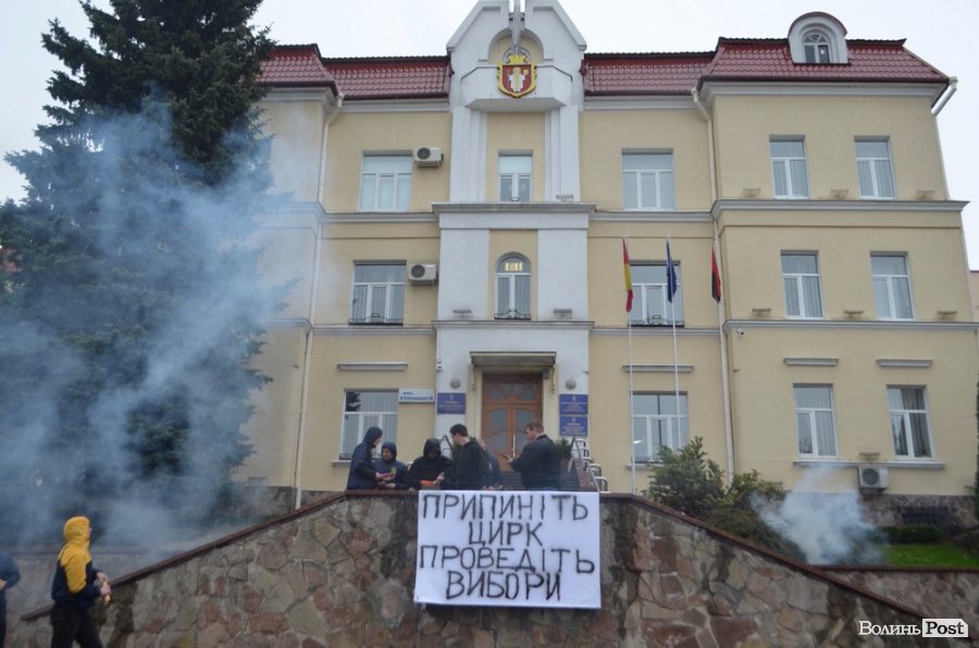 У Луцьку активісти «Національного корпусу – Волинь» прийшли до міської ради, аби закликати депутатів «не вчиняти цирку», а пришвидшити призначеня виборів. Під будівлею ради вони скандували "Припиніть цирк - проведіть вироби", палили фаєри і димові шашки, а після цього зайшли до сесійної зали, аби висловити свою позицію.