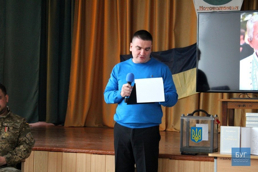 «Колись переді мною виступали афганці, а зараз перед вами виступає мій друг. Проживши все життя в селищі Благодатному, ми бачились, але не дружили. Вийшло так, що на війну я його віз своїм бусом. Старались допомагати з перших днів, коли ще ніхто не розумів, що почалася війна. І наразі також всі заспокоїлися, бо думають: якщо по телевізору все спокійно, один вбитий, два-три поранених – це не великі втрати. Маємо до вас дуже велике прохання долучитися до акції, під час якої проводитиметься збір коштів на автомобіль для танкістів. Говорять, що зараз атовці всім забезпечені – це неправда. Я маю право так говорити, тому що я це бачу. Бачу, на якій техніці вони воюють. Маючи більше грошей, ніхто б, повірте, вас не просив долучатися до цієї акції. Навіть якщо ми врятуємо одне життя – це варте того», – звернувся до учнів волонтер Олександр Мазурок.