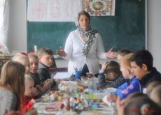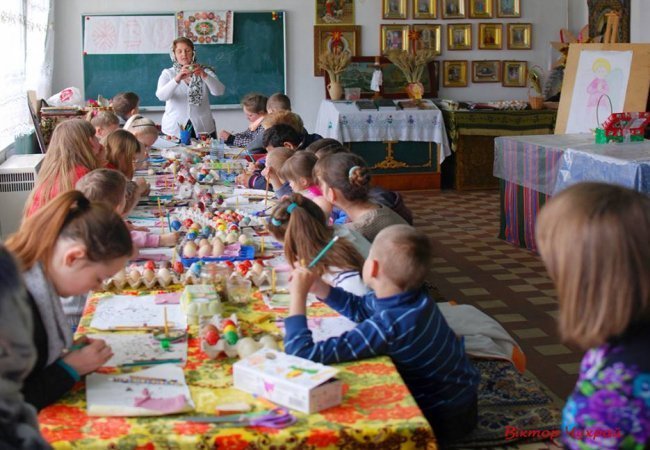 "Вербові гілочки на писанках у недільній школі Павла Краєвського на Великому Омелянику", - пише він у Facebook.
