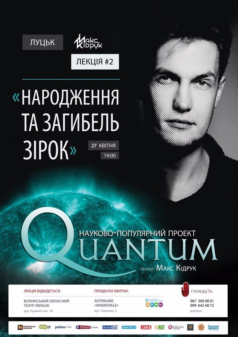 «Quantum» – науково-популярний проект, покликаний розширити знання людей про світ та познайомити із найновішими відкриттями сучасної науки – проїздить до Луцька вже вдруге. На першій лекції гості розмовляли про великий вибух, виникнення а поступове розширення Всесвіту, а також обраховували орієнтовний вік нашої планети.