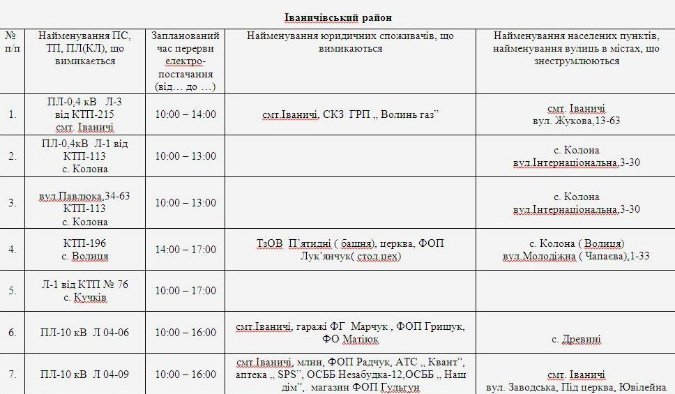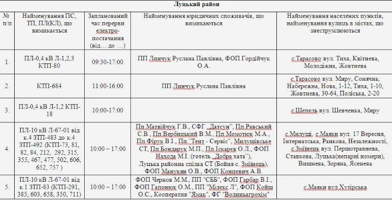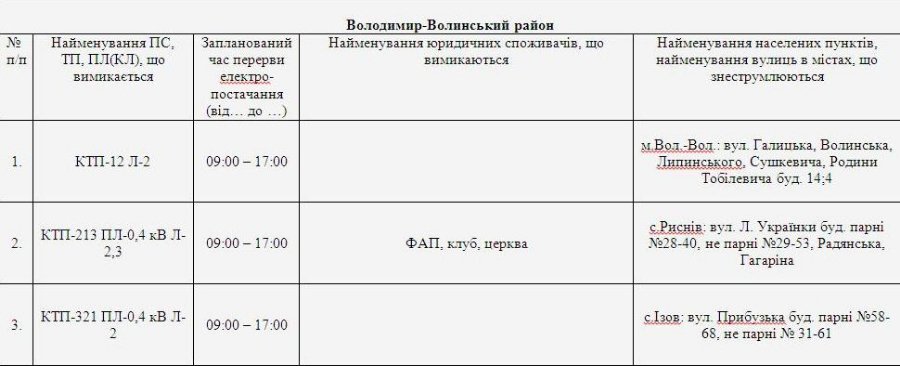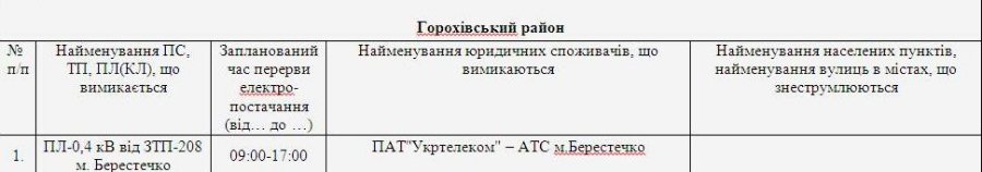 Де не буде світла на Волині та у Луцьку 12 квітня