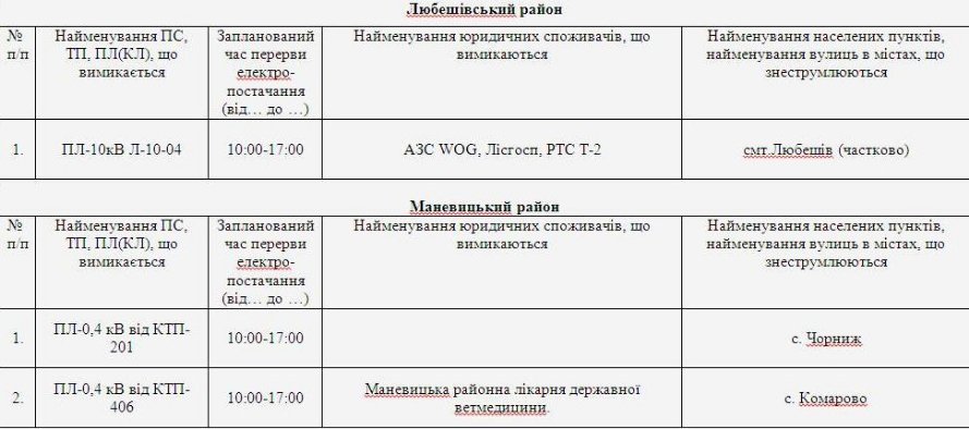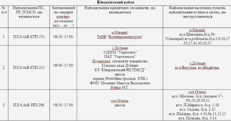 На Волині в зв’язку з ремонтними роботами на лініях електропередач 12 квітня відбудеться відключення електроенергії у деяких населених пунктах, перелік яких публікуємо.