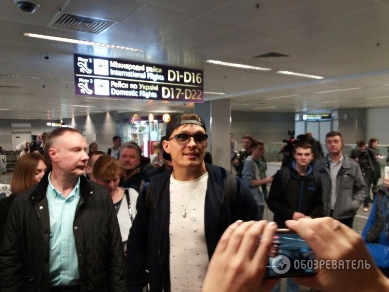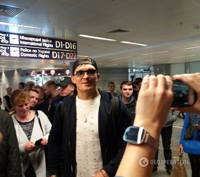 У столичному аеропорту «Бориспіль» кримчанина зустрічала його сім'я, а також друзі, шанувальники боксу і представники ЗМІ. При цьому рідні Олександра залишилися в машині на парковці – «не хочуть світитися», сказав сам боєць.