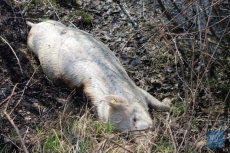 Неподалік дороги, у канаві – мертва свиня. Як вона там опинилася – невідомо.