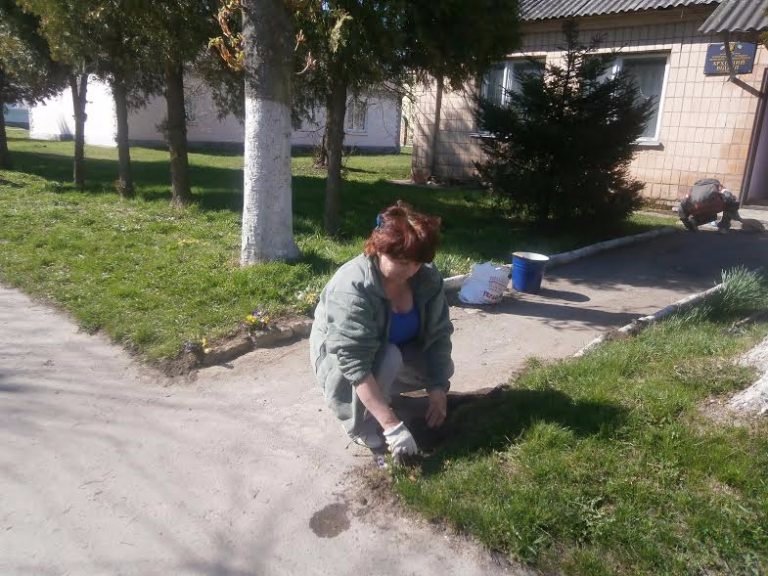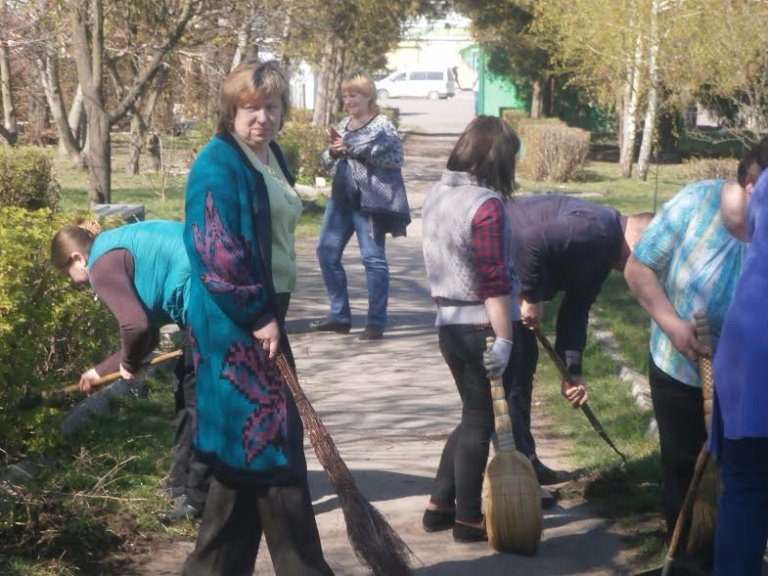 Гуртом прибирали територію біля адмінбудівель: підмітали доріжки, висаджували квіти. До Пасхальних свят селище набуває святкового вигляду: очищаються вулиці й тротуари, підбілюються бордюри, ошатнішими стають фасади будинків, милують око клумби з весняними квітами.