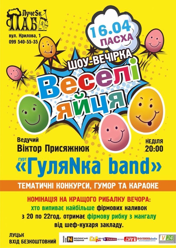Завершується Піст і є нагода нарешті трішки відірватись! :) Спеціально до Великодніх свят, з якими, до речі, щиро Вас вітаємо, ми вирішили зробити великодні танцульки! Багато української музики та світових хітів, жвавий настрій, кілька келихів пива та ще один хороший вечір у вашому житті.