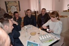 Після цього бійці взялися розмальовувати власні писанки. Урок для хлопців провела завідуюча етнографічним відділом Людмила Мірошниченко-Гусак.
