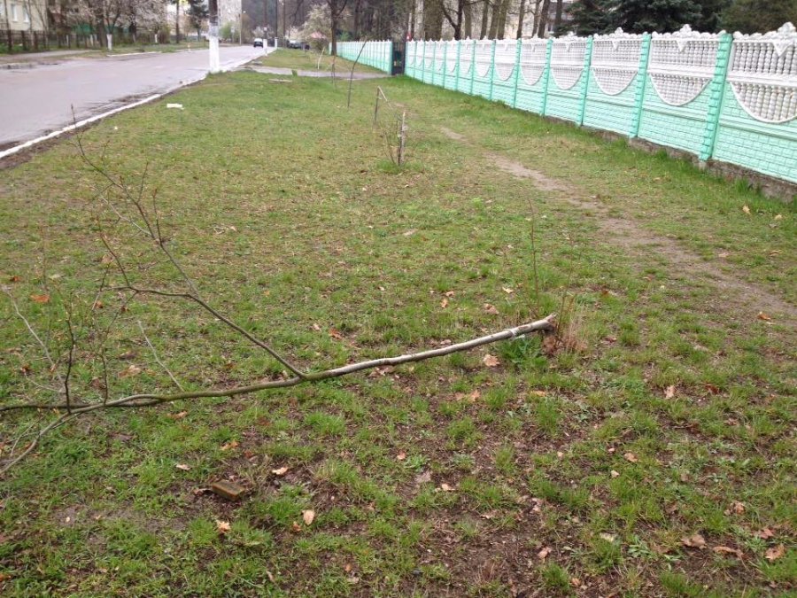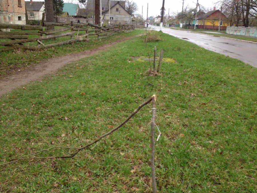 У Ківерцях на вулиці Некрасова невідомі поламали саджанці нещодавно висаджених дерев.