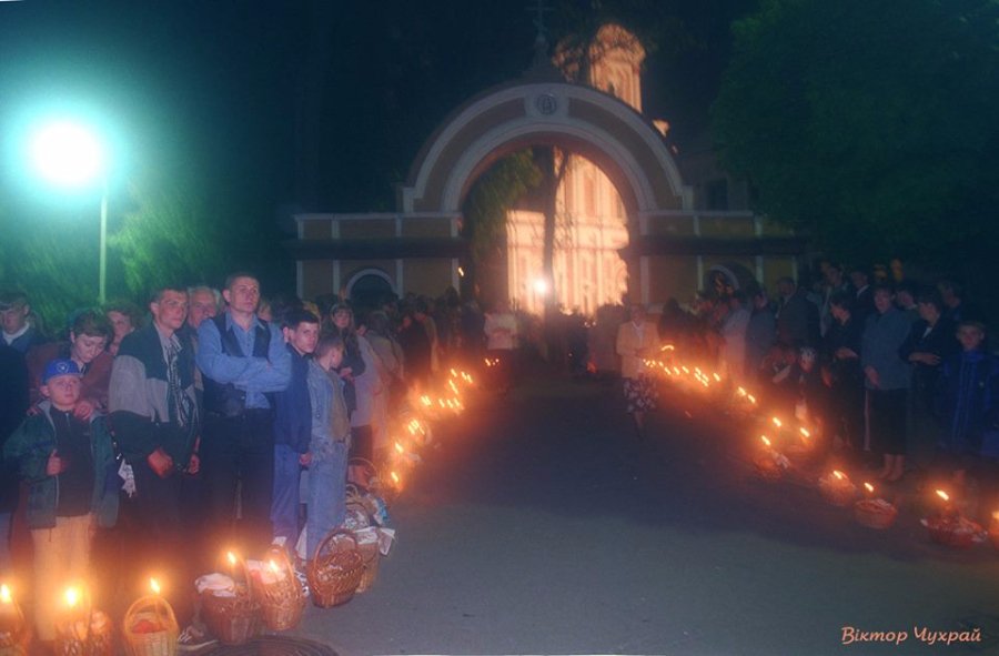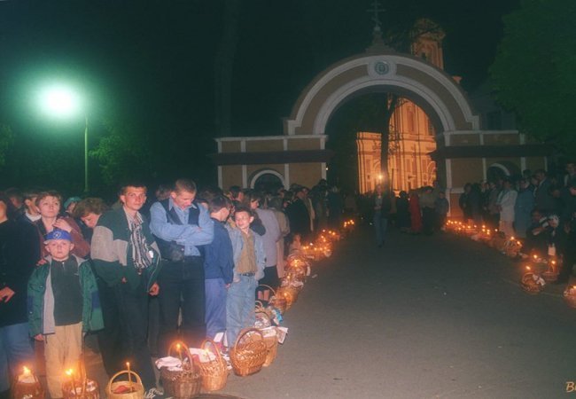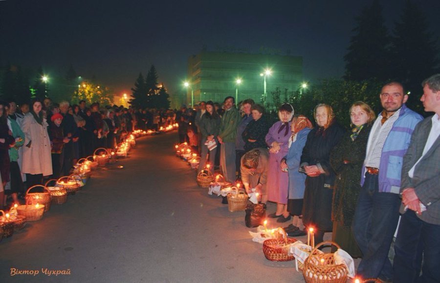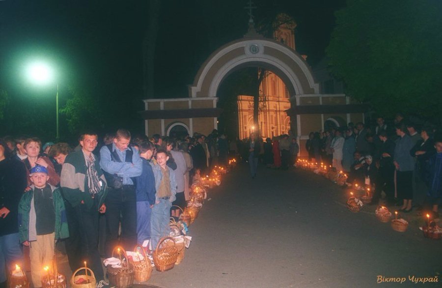 Фотограф Віктор Чухрай опублікував 9 світлин, знятих під час освячення паски в Луцьку у Свято-Троїцькому соборі 18 років тому.