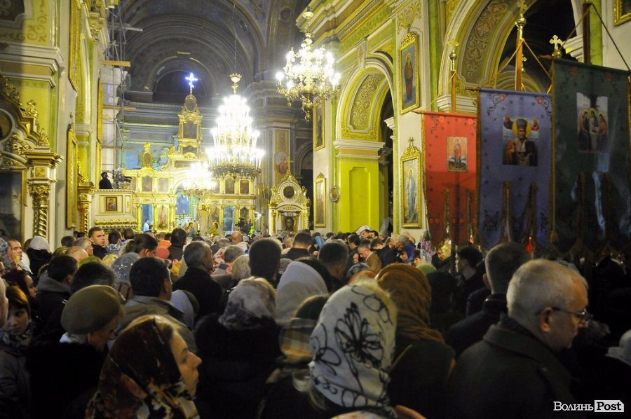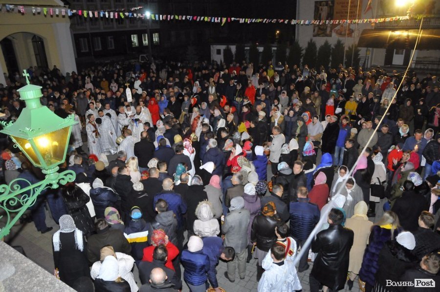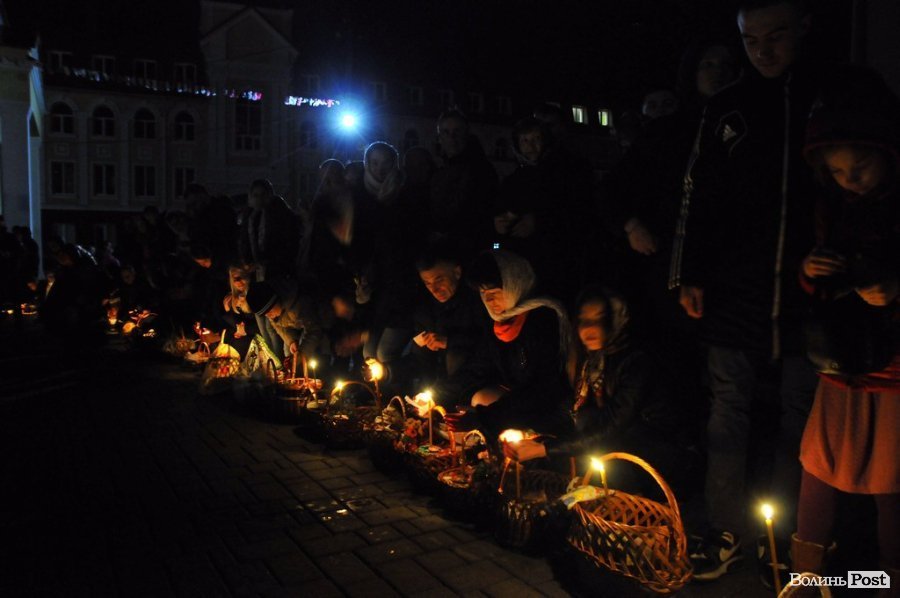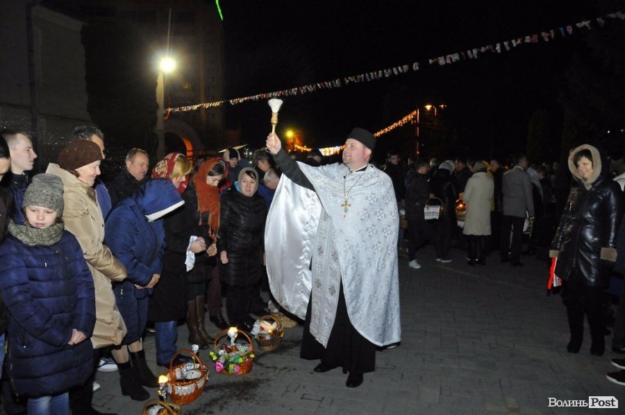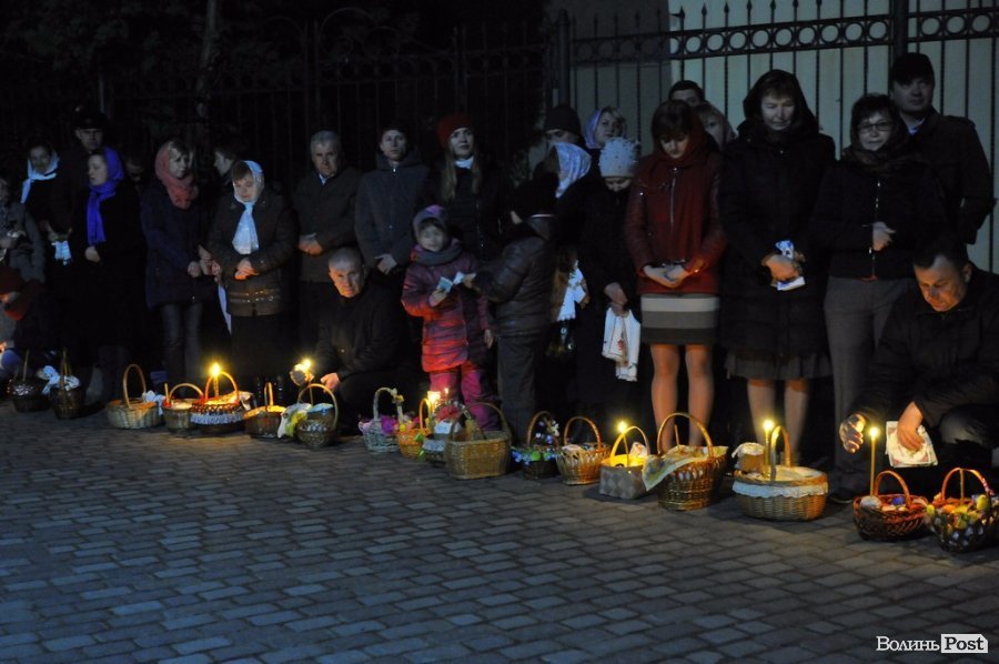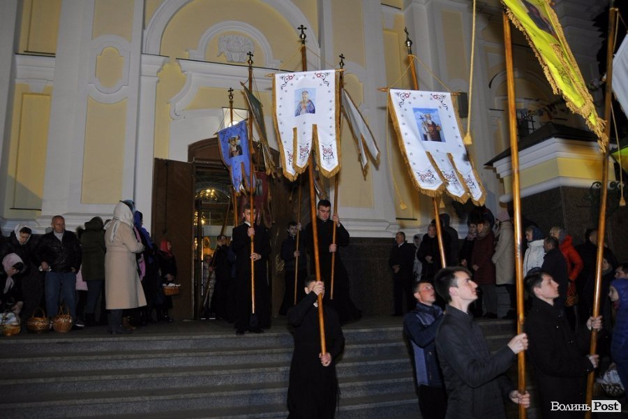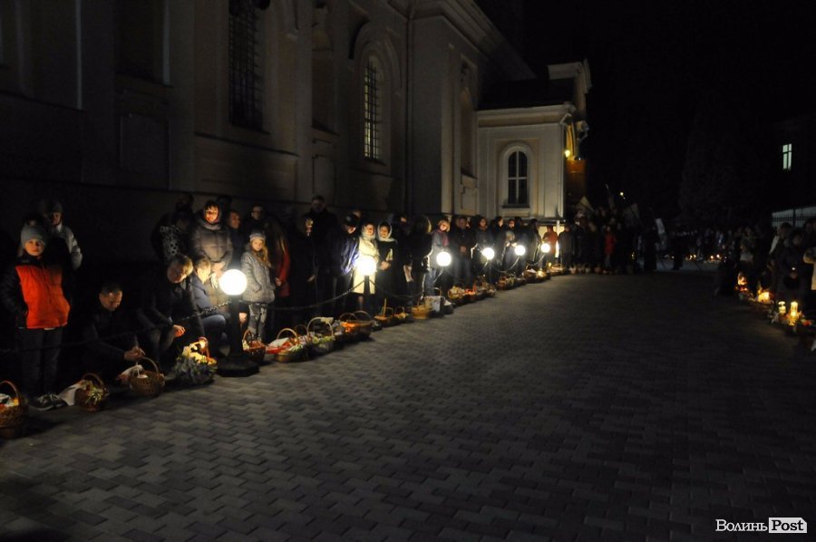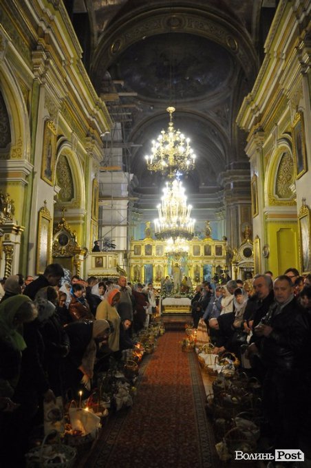 Як у центральному храмі Луцька вночі святили паски. ФОТО