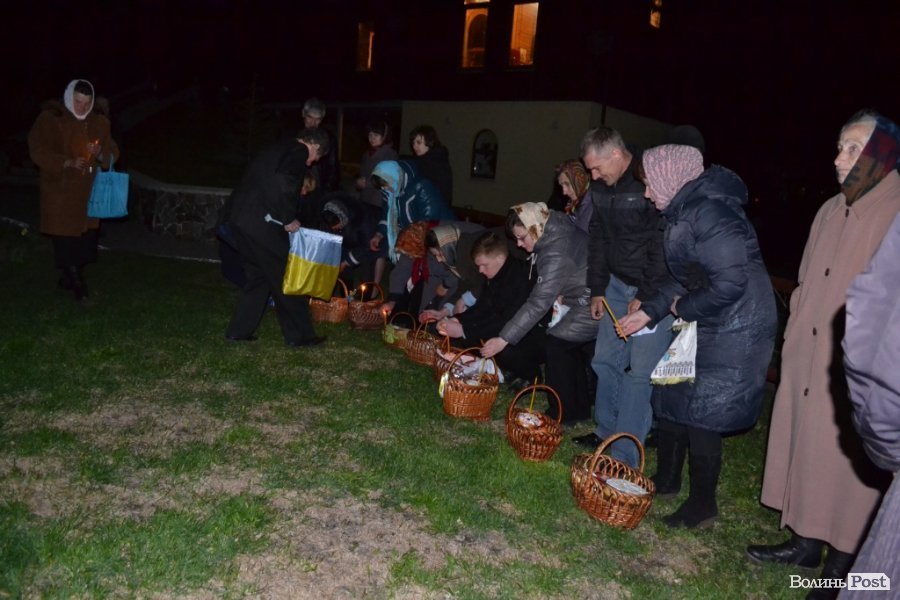 Вони принесли освятити кошики з великодніми стравами, зокрема пасками та писанками.