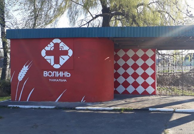 Зупинку громадського транспорту у селі Княгининок Луцького району розфарбували новим туристичним логотипом Волині.