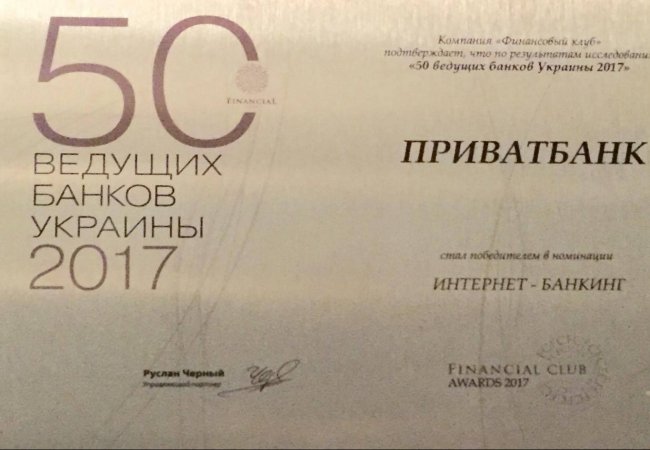 Як повідомили організатори національного рейтингу найкращих банків FINANCIAL CLUB AWARDS – 2017, систему інтернет-банкінгу ПриватБанку визнано найкращою як експертною радою, так і за результатами голосування топ-менеджерів найбільших українських банків.