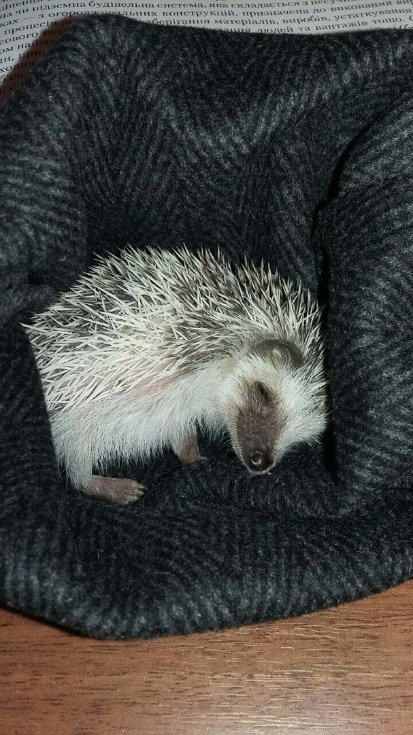 Та найголовніше – стежити за зовнішнім виглядом. Якщо з’являється лупа або на вухах присихає шкіра, це значить, що не вистачає вітамінів. Треба пильнувати, щоб їжаки були активними вночі: недобре, якщо починають більше спати. Як і в людей, у них є вроджені патології, які проявляються з 2-3-го місяця від народження. Заради цікавості Володимир возив їжачиху на УЗД, але нічого з цього не вийшло, бо від рефлексу самка скручується.