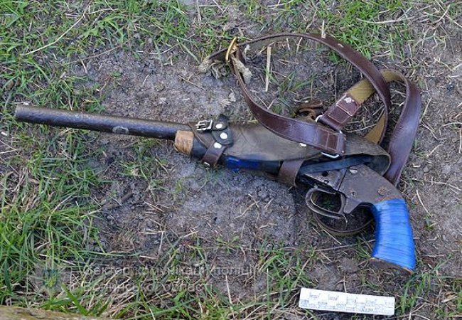 Пристрій кустарного виробництва поліцейські знайшли у хліві 40-річного мешканця cела Залізниця Любешівського району. Пістолет виготовлений із рушниці 16-го калібру, будь-які маркування на пристрої відсутні.