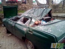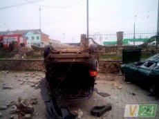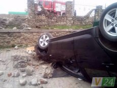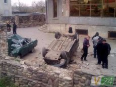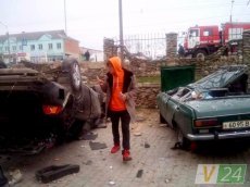 У селі Струмівка сталася аварія: Mitsubishi знесло з дороги, вона протаранила паркан, зробила сальто і гепнулася на автомобіль Москвич, який стояв на території станції техобслуговування.