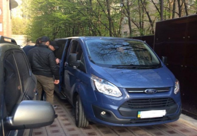 Мартиненко разом з детективами вийшли через боковий вихід будівлі на Кловському узвозі,7 і сіли у синій мікроавтобус і поїхали.