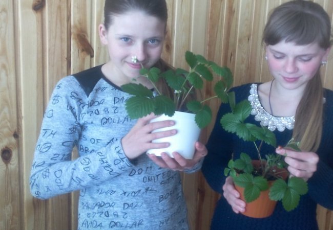 Як результат – червоні ягідки суниці лісової на початку квітня тішать око всіх, хто заходить у Рудниківську ЗОШ.