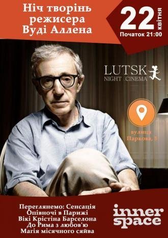 В суботу, 22 квітня, о 21:00 у приміщенні антикафе «Inner Space» відбудеться показ творінь режисера Вуді Аллена. Серед обраних організаторами кінострічок покажуть такі: «Сенсація», «Магія місячного сяйва», «До Рима з любов’ю», «Вікі Крістіна Барселона», «Опівночі в Парижі».