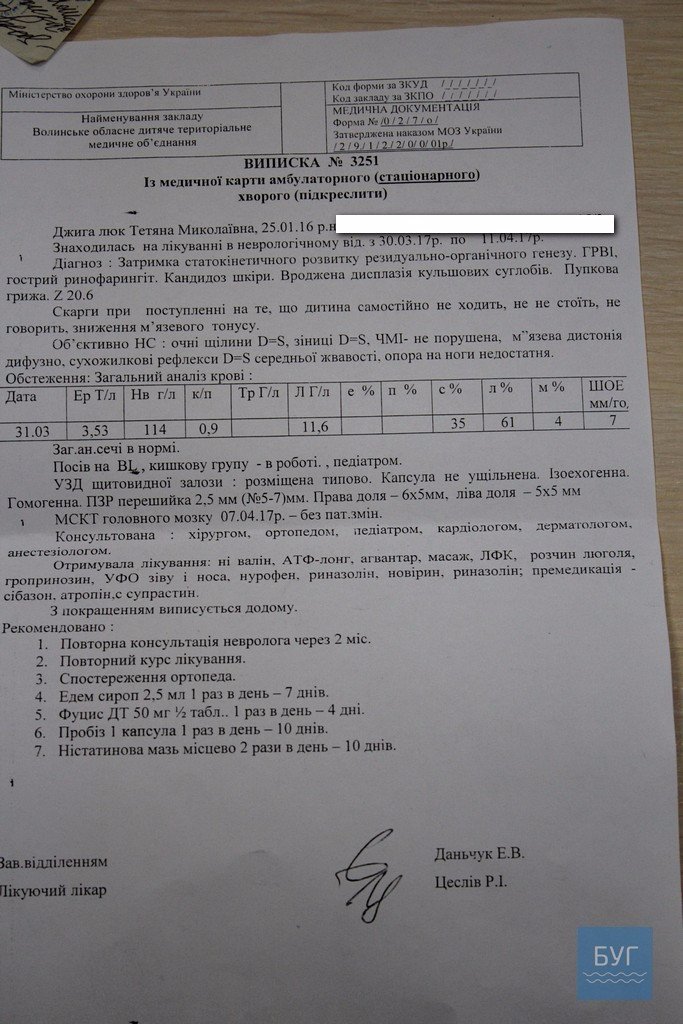 Тетянка потребує регулярного лікування. До того ж, дівчинці необхідне спеціалізоване харчування “HiPP”.