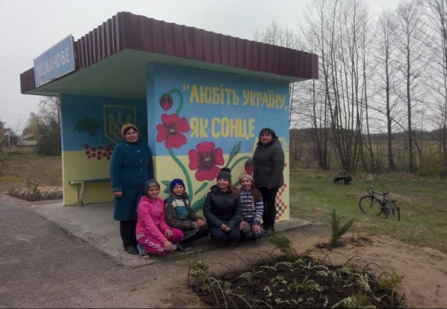 Діти разом із своїми старшими наставниками пофарбували зупинку в жовто-блакитні кольори, розмалювали її стіни розкішними червоними маками, знайшлося місце і для державного символа – тризуба, для фрагменту вишиванки і патріотичних написів, у тому числі і авторства Тараса Шевченка.
